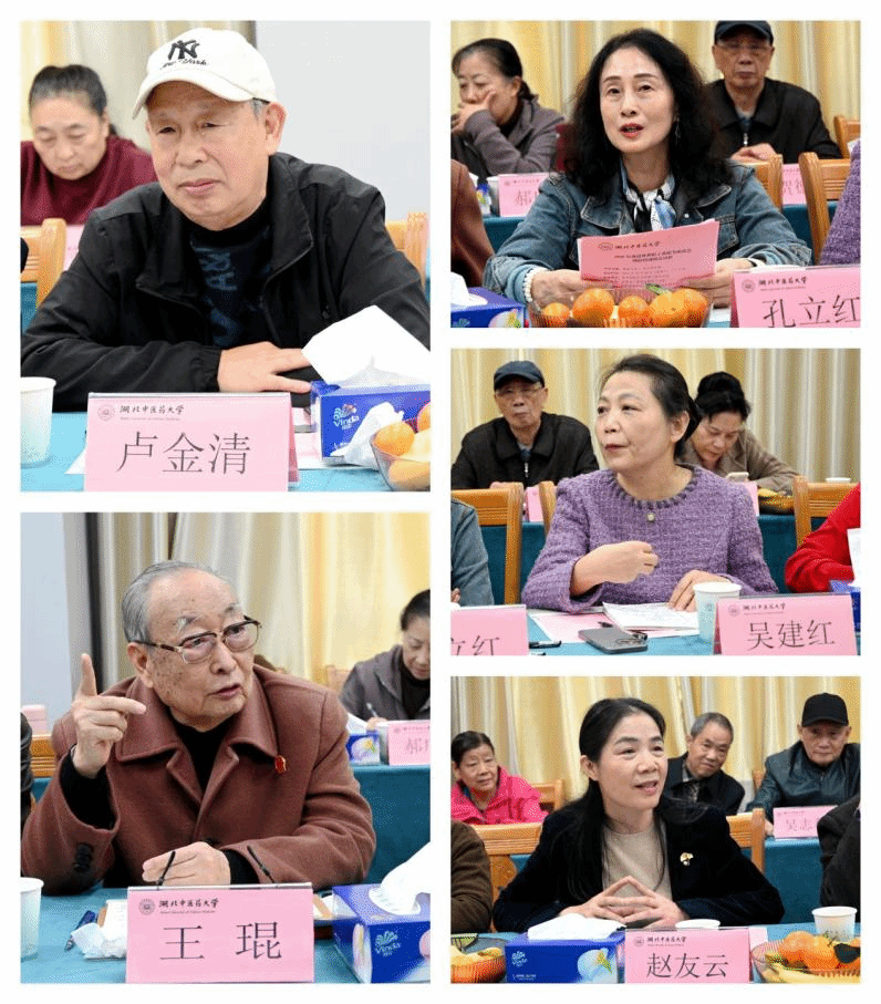 离退休教职工代表卢金清、孔立红、吴建红、赵友云、王琨在会上作交流发言,对学校改革发展大局,以及人才培养、医教研融合、附属医院建设等方面提出了意见建议,并表示将继续发挥余热,为学校转型升级和高质量发展贡献智慧和力量。