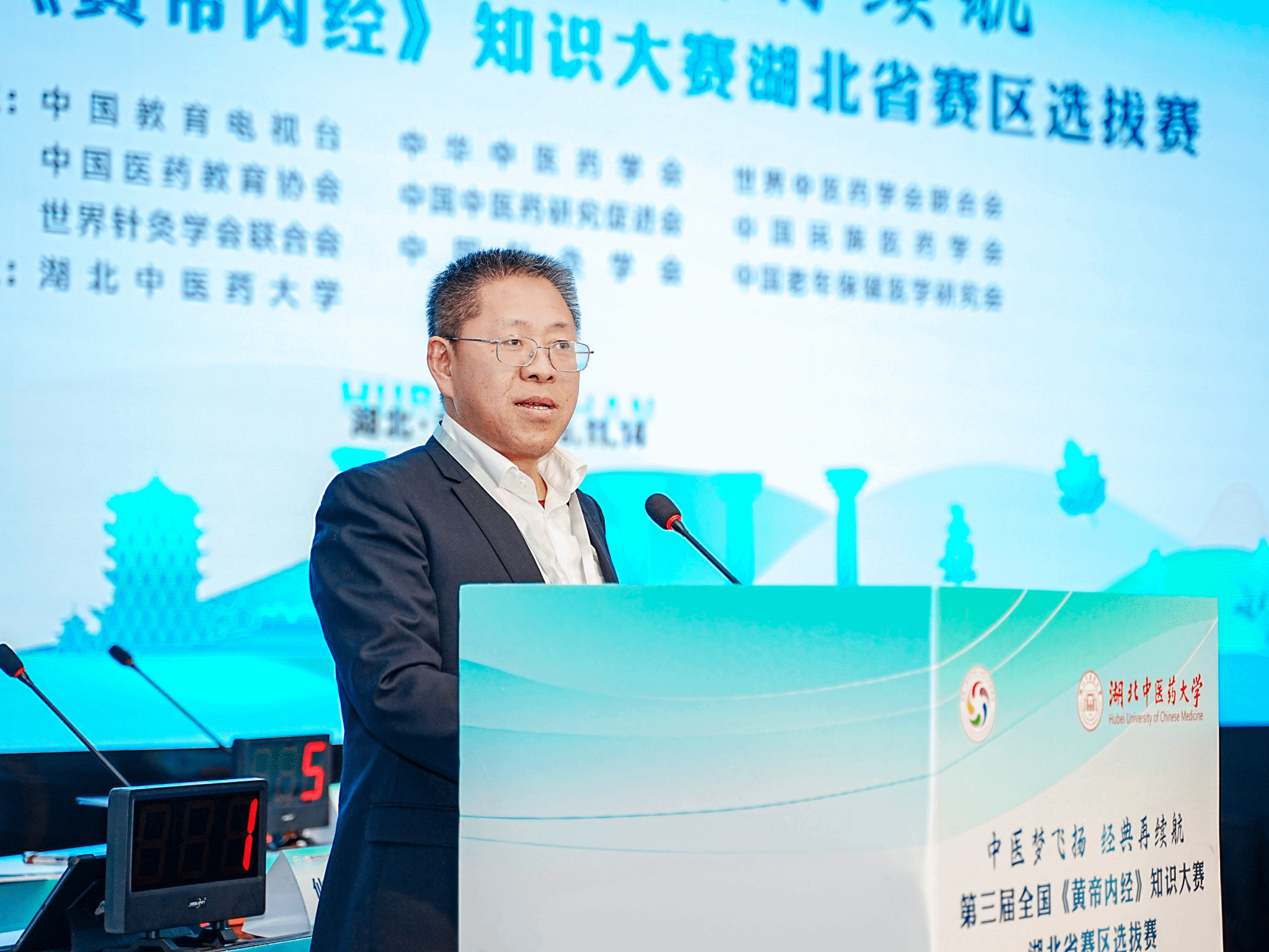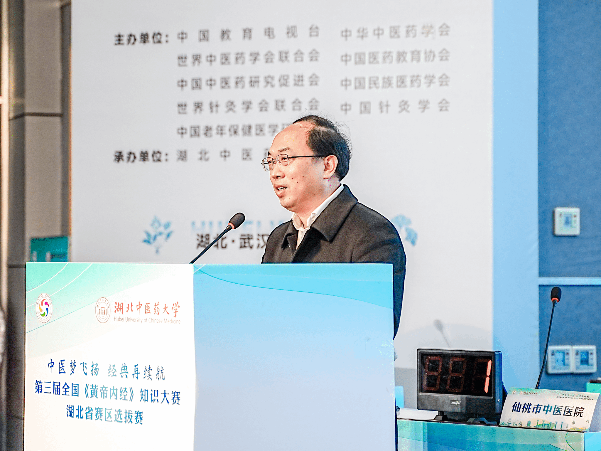 本网讯 11月14日,第三届全国《黄帝内经》知识大赛湖北省赛区选拔赛在学校黄家湖校区明德楼学术报告厅举行。本次比赛由全国中医药高等教育学会、中华中医药学会、世界中医药学会联合会、中国教育电视台等单位联合主办,学校承办,湖北国药中联医药有限公司支持。来自全省18个单位的19支队伍同台竞技,共溯医典之源,共扬岐黄之术。