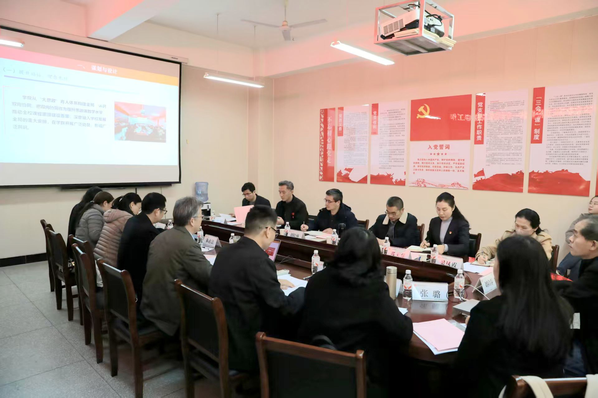 本网讯 为深入学习贯彻党的二十届四中全会精神,推动全会精神进教材、进课堂、进头脑,深化双向协同,提升思政课教学质量,11月20日,学校在黄家湖校区文华楼马克思主义学院会议室召开学习贯彻党的二十届四中全会精神集体备课会暨思政课程与课程思政双向协同推进会。党委书记刘松林、党委副书记杨波、副校长王彦春,党政办公室、党委宣传部、教务处负责人,马克思主义学院领导班子成员和全体教师参加会议。会议由马克思主义学院党总支负责人主持。