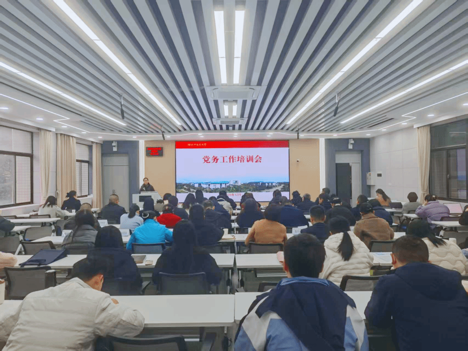 本网讯 12月4日,学校在黄家湖校区本草苑Y102召开党务工作培训会,围绕夯实基层党建基础、提升党务工作能力进行培训。党委常委宋杰出席培训会,各二级单位党组织负责人、专职组织员、党支部书记代表及相关工作人员参加培训。