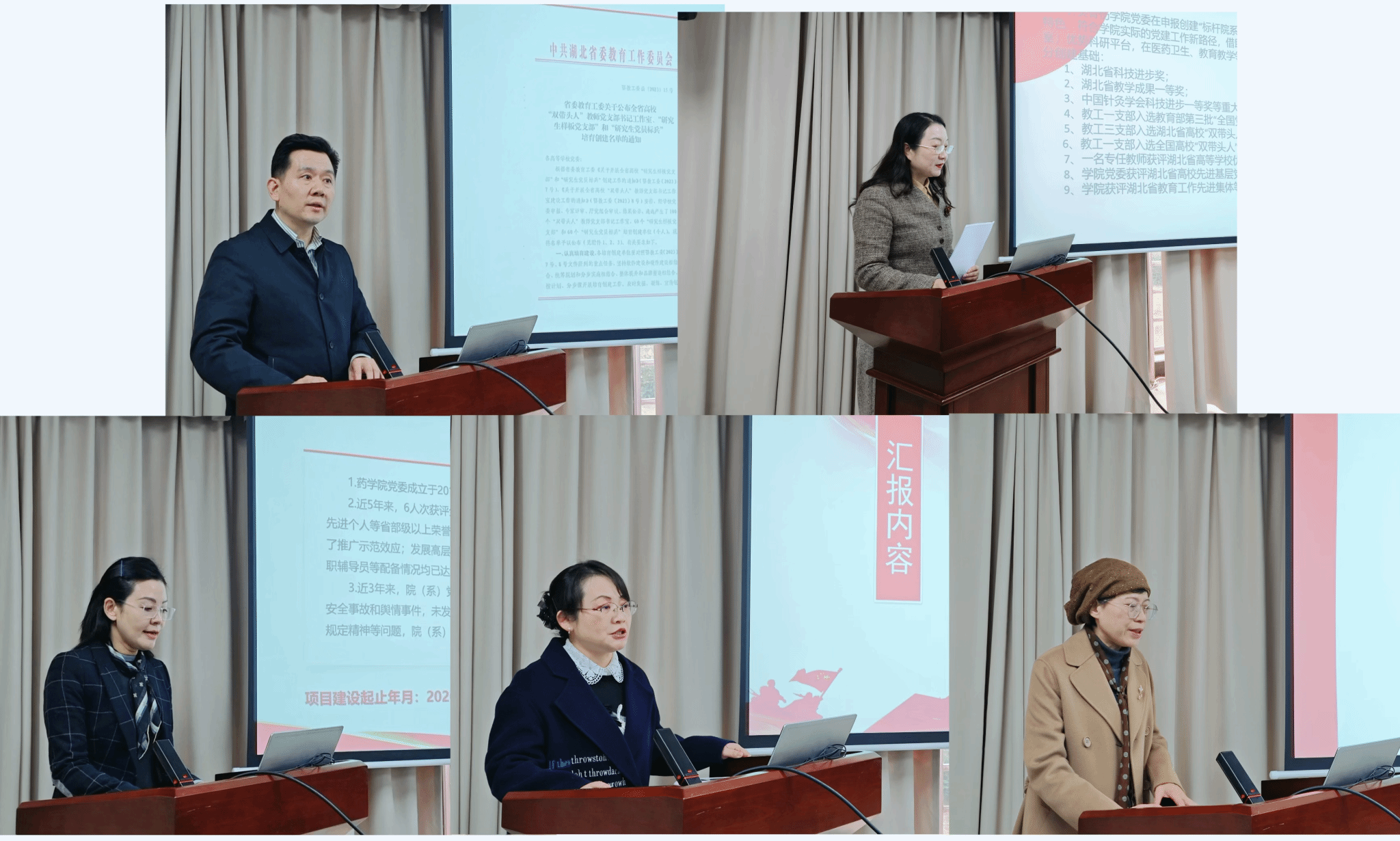 会上,中医学院党委、针灸骨伤学院党委、药学院党委、检验学院党委、医学人文学院党委负责人围绕落实立德树人根本任务,推动党建与业务深度融合,汇报了学院党建工作特色做法、品牌创建思路以及工作成效。12个党支部书记分享了推进党支部标准化建设、党员教育管理、筑牢战斗堡垒、发挥党员先锋模范作用等方面的举措和成效以及下一步打算。