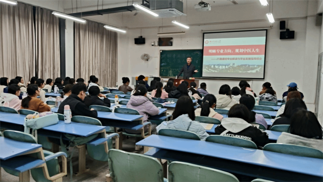 副校长王彦春为中医学院2025级中医学美康班召开主题班会,他结合分管学校教育教学工作的实际经验,聚焦中医学专业方向、课程设置及就业前景等学生关心的问题,进行了细致深入的解答与分析,帮助学生理清了学业核心脉络与发展机遇,有效强化了对中医学专业认同感与学习内驱力,引导学生精准规划、夯实基础,为未来成长奠定思想基础。