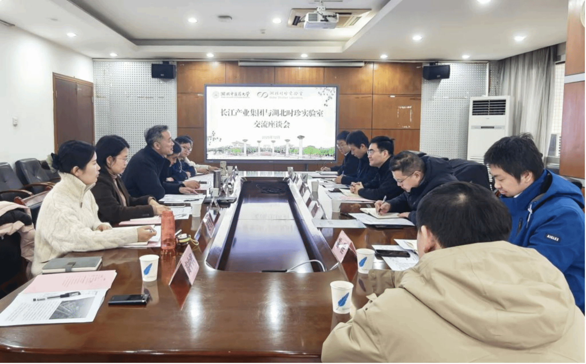 本网讯 12月24日,长江产业投资集团有限公司总经济师童卫宁一行来湖北时珍实验室交流座谈。副校长王彦春主持座谈会,长江产业投资集团有限公司全资子公司长江科创服务集团有限公司及长江医疗产业投资有限公司相关高管,学校科学技术发展研究院负责人,湖北时珍实验室工作人员参加交流座谈。