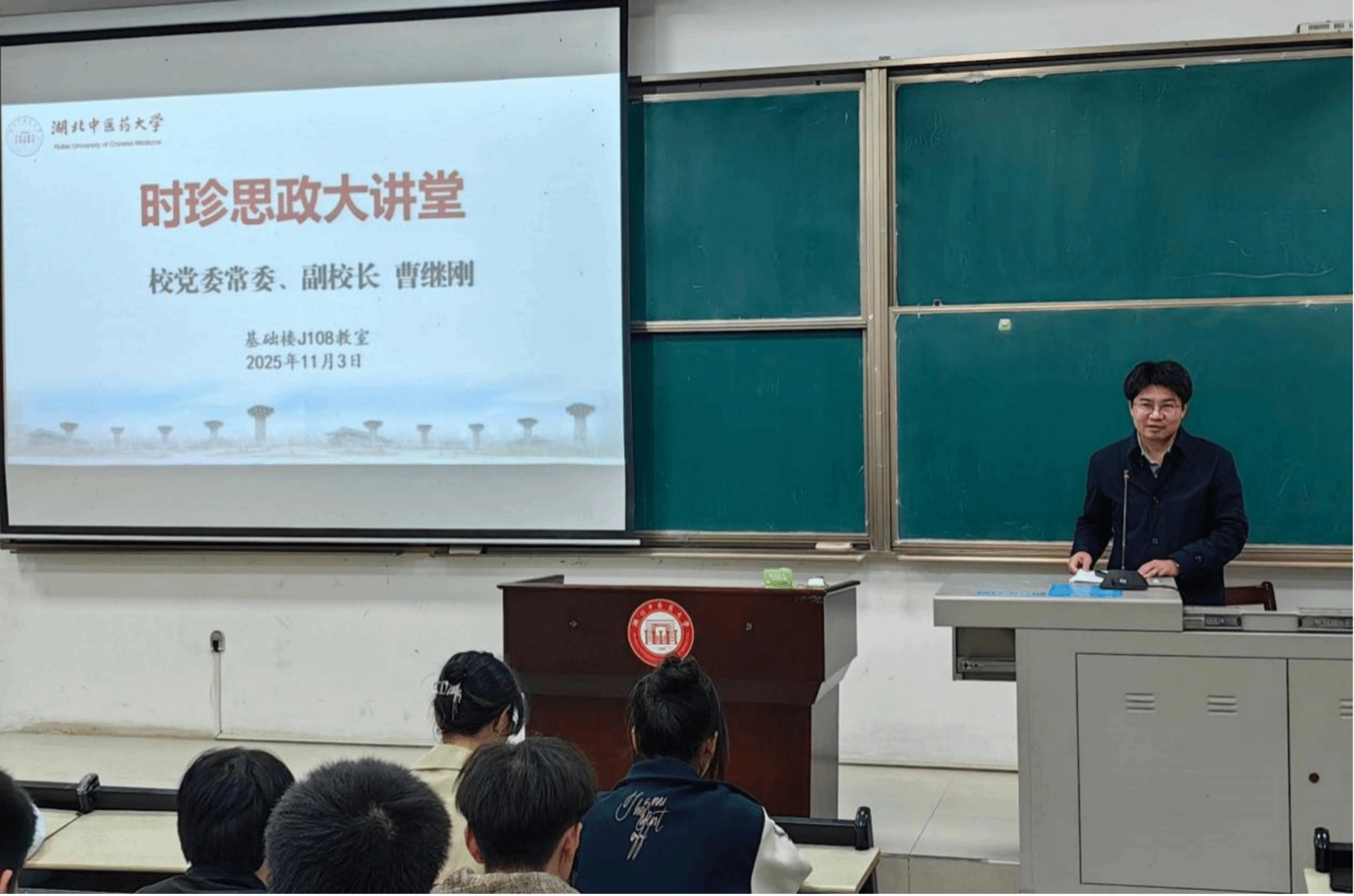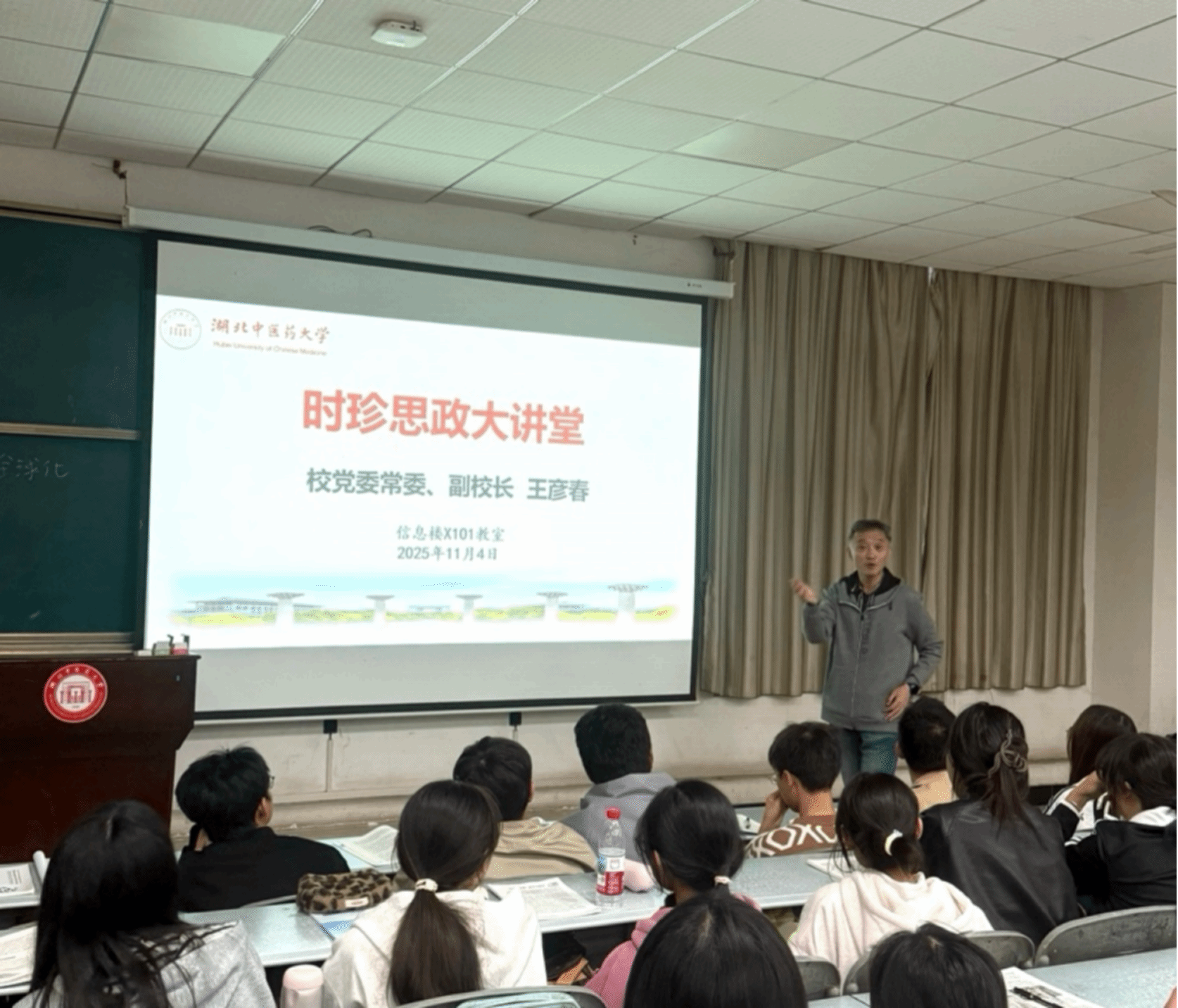 本网讯 为深入学习贯彻党的二十届四中全会精神,推动习近平新时代中国特色社会主义思想进教材、进课堂、进头脑,增强“形势与政策”课教学实效,11月至12月,马克思主义学院举办“时珍思政大讲堂”系列专题教学活动,全体校领导走进课堂,为本科生讲授思政课。