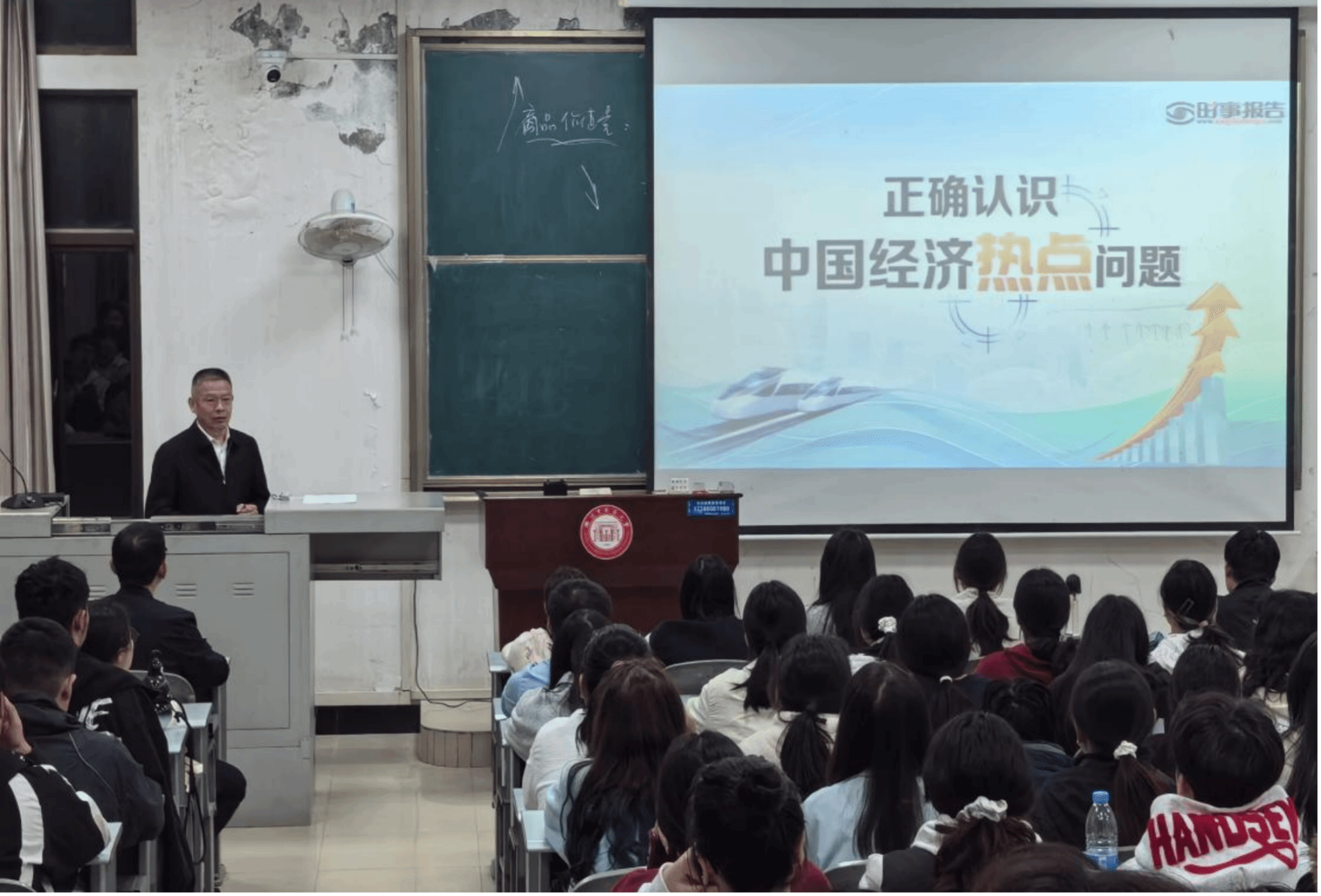党委副书记杨波为2025级健康服务与管理、食品质量与安全、运动康复班学生授课。他讲述了中国应对外部冲击的能力与底气,介绍了当前我国促进民营经济发展壮大的政策,梳理了近年来我国在科技创新、产业链升级、绿色转型等领域取得的突破性进展,勉励同学们要透过现象看本质,坚定发展信心。