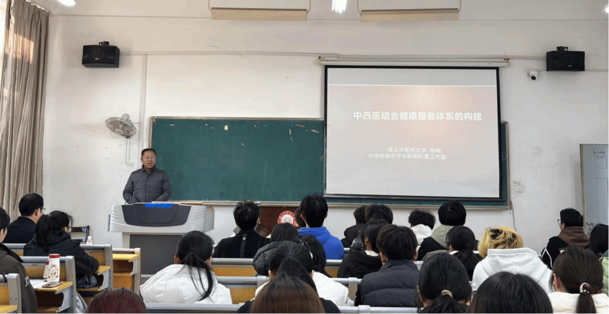 校长陈刚以“中西医结合健康服务体系的构建”为题,为2024级时珍国药班、时珍国医班授课。他结合国家人口发展战略与中医药专业特色,通过科研成果转化、对外交流合作等实践案例,介绍了学校在老年病学科、智慧中医院、社区医疗服务体系建设等方面的成果,鼓励同学们以经典为基、以实践为要,传承中医药理论精髓与人文精神,主动拥抱现代科技与时代需求,在构建中西医结合健康服务体系的实践中展现青春作为。