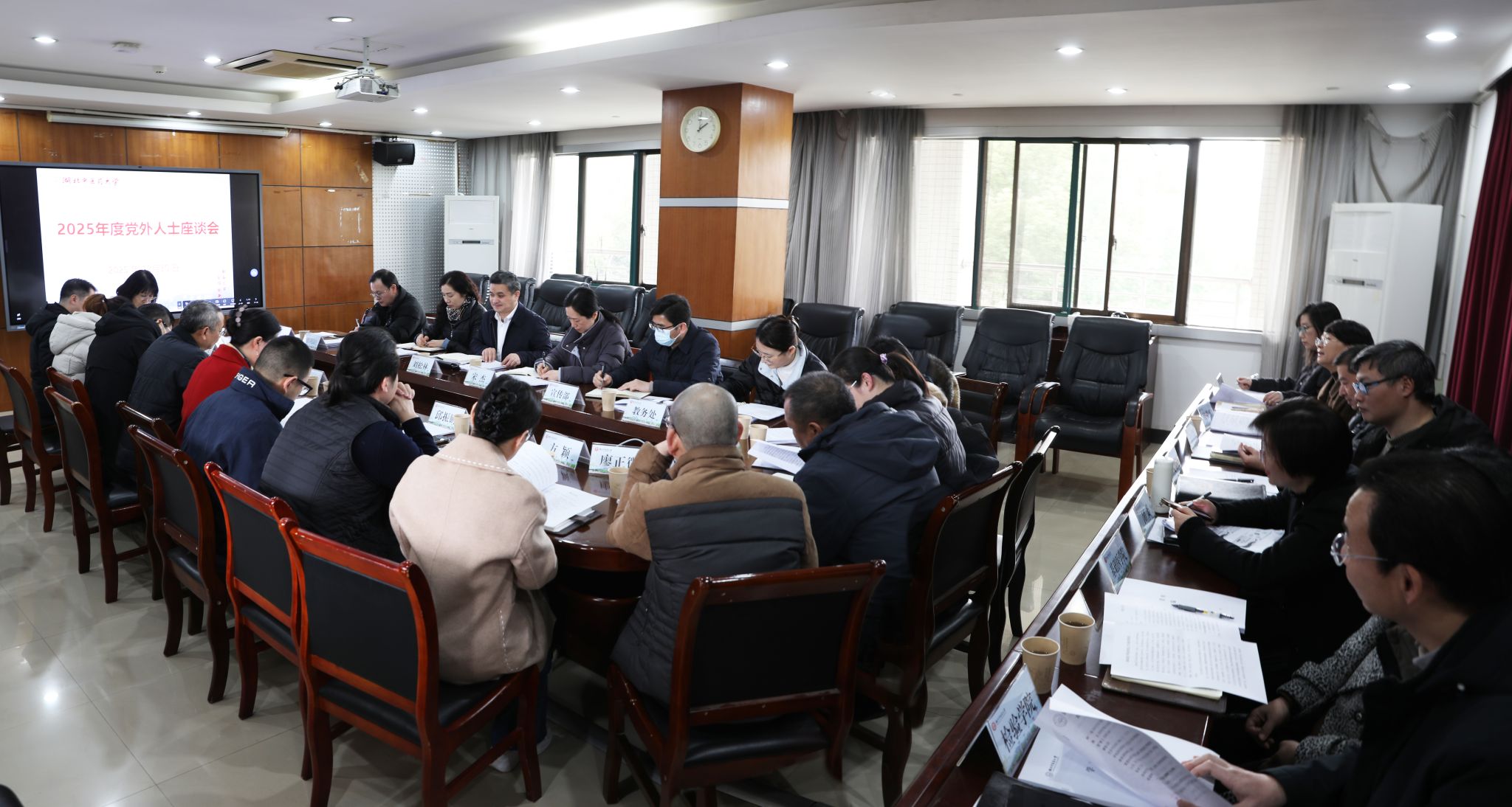 本网讯 12月30日,学校在黄家湖校区召开2025年度党外人士座谈会,深入学习贯彻党的二十届四中全会精神、习近平总书记在中央党外人士座谈会上的重要讲话精神,就学校全面深化综合改革事项等听取党外人士的意见建议。党委书记刘松林主持会议并讲话,党委常委宋杰,各民主党派、无党派人士代表,人大代表、政协委员,统战团体负责人及相关职能部门、学院党委负责人参会。