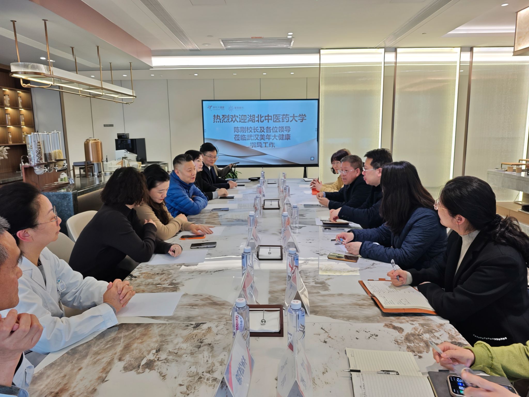 本网讯 为精准对接企业用人需求,拓宽毕业生就业渠道,3月20日,校长陈刚率队赴武汉美年大健康体检管理有限公司(亿生分院)开展访企拓岗。美年健康集团副总裁、华中大区总经理段泽彪,武汉城市群总经理代艳,华中大区人力资源部总监江珍,华中大区医疗管理总监潘玉强等部门负责人,学校党政办公室、学生工作部(处)、针灸骨伤学院领导班子参加活动。