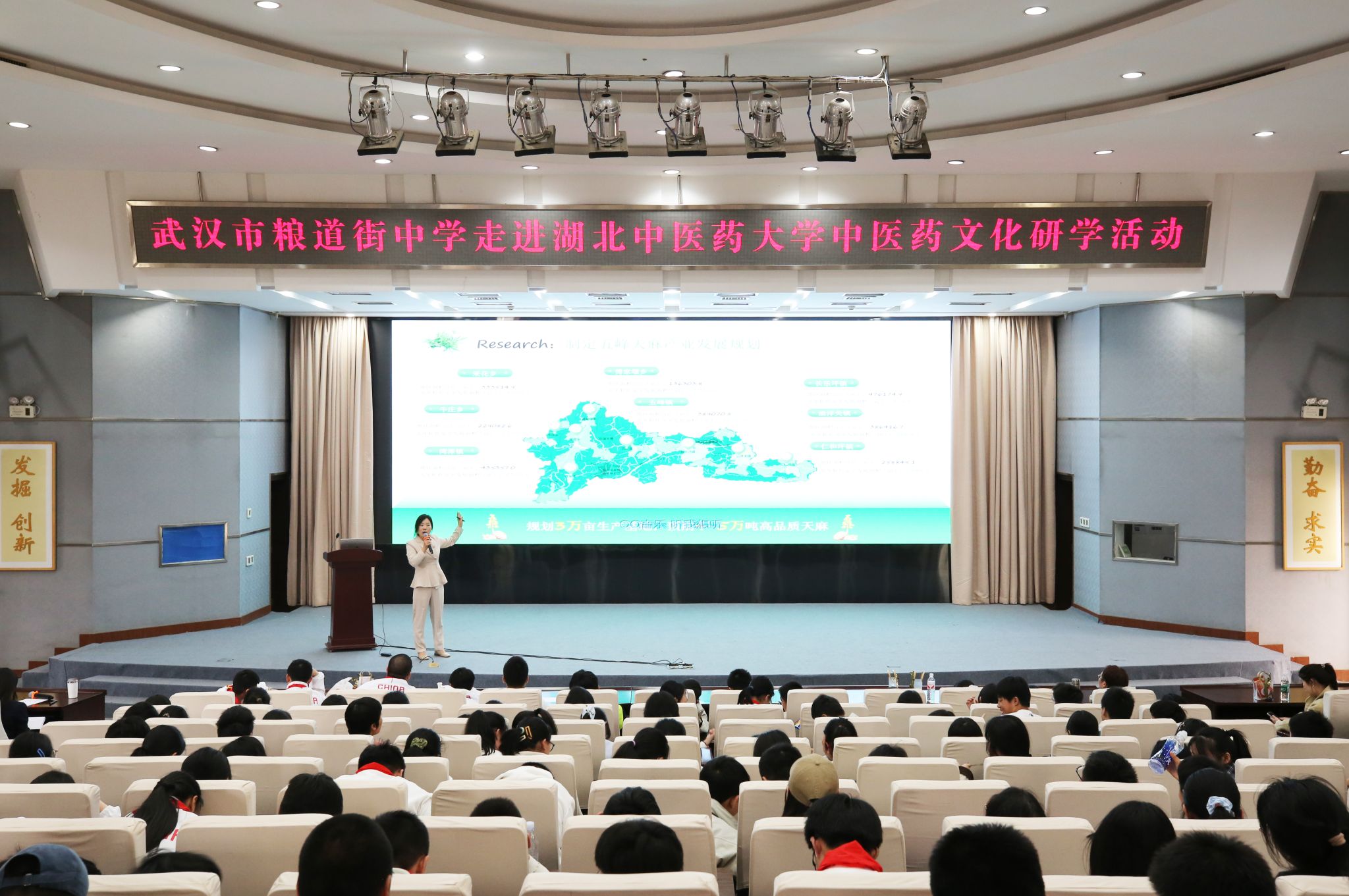本网讯 3月27日,学校黄家湖校区迎来武汉市粮道街中学400名七年级师生,一场以“走进中医药・认识药用植物”为主题的中医药文化研学活动在此开展。本次活动由药学院、附属医院(湖北省中医院)儿科联合粮道街中学开展,研学师生分批次聆听科普讲座,参观药用植物园、中药标本馆,通过沉浸式体验、专业化讲解、趣味化互动,近距离感受荆楚中医药的独特魅力与时代价值。学校副校长刘建忠,粮道街中学副校长江黛出席活动。