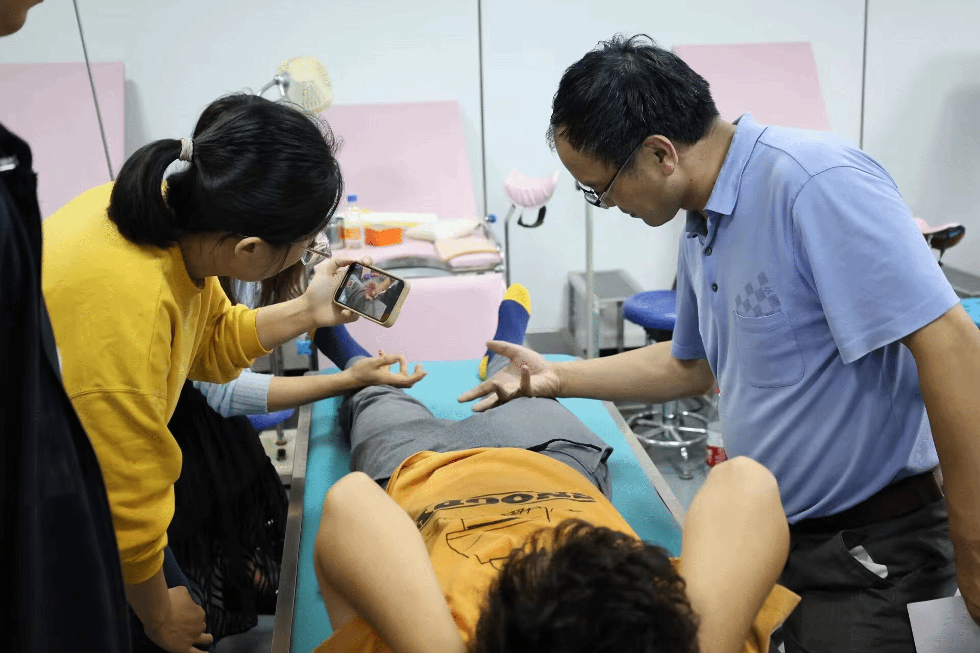 针灸骨伤学院开展2023’华佗杯全国高等院校针灸推拿临床技能大赛冲刺训练,指导老师对参赛选手进行模拟考核