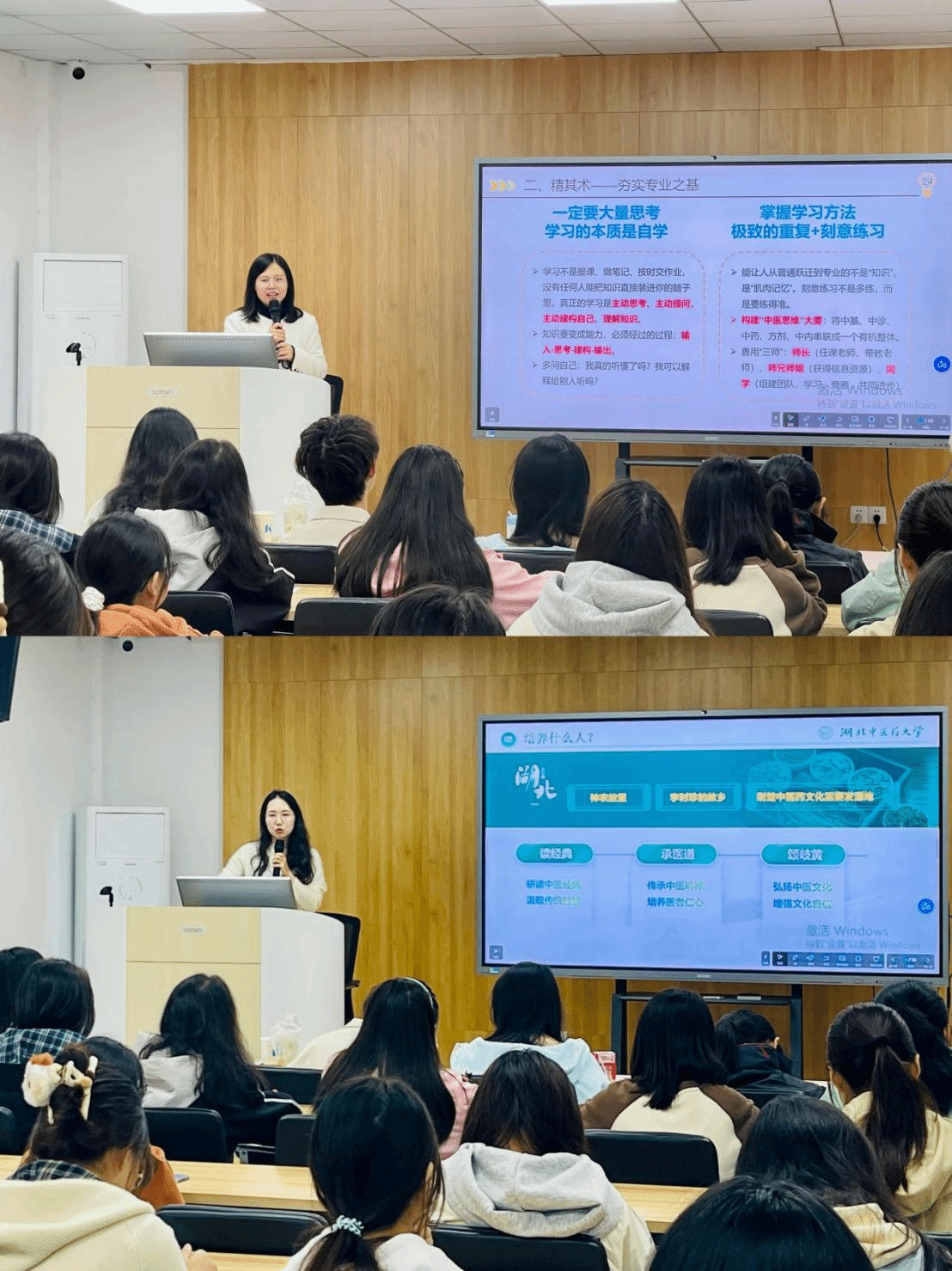 活动现场,第一临床学院专职辅导员杨瑞华和学生工作部(处)专职辅导员喻天琦分别就“杏林+”辅导员工作室医学生学业发展的精准辅导模式和“荆楚中医药文化视域下书香校园建设路径探究”项目进行经验交流。