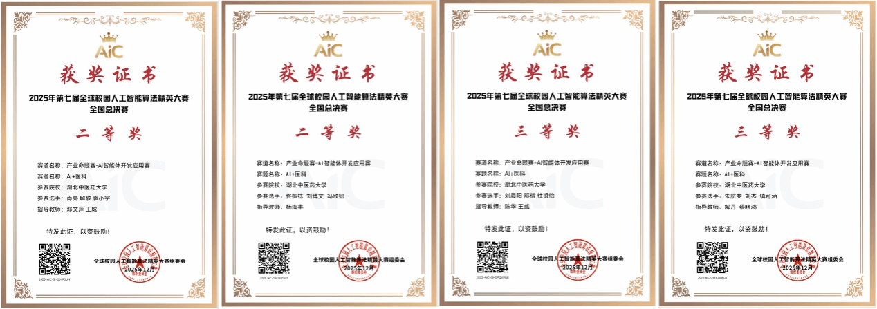 2025全球校园人工智能算法精英大赛由江苏省人工智能学会、武汉纺织大学、北京中云国创数据科技有限公司联合主办,是人工智能算法领域具有较大影响力的校园赛事之一。此次比赛锻炼了学生的创新实践能力与团队协作精神,充分体现了学校推进新工科与中医药学科深度融合的育人成效。
