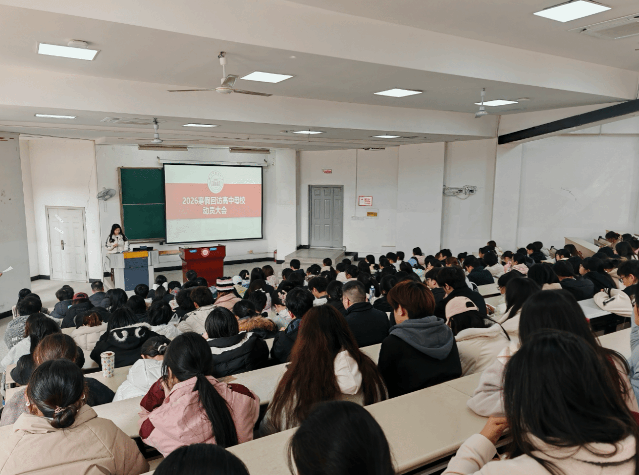 本网讯 为加强招生宣传,扩大学校影响力,进一步提升生源质量与社会声誉,2025年12月30日,学校在黄家湖校区举行“2026年寒假优秀学子回访高中母校动员大会”。