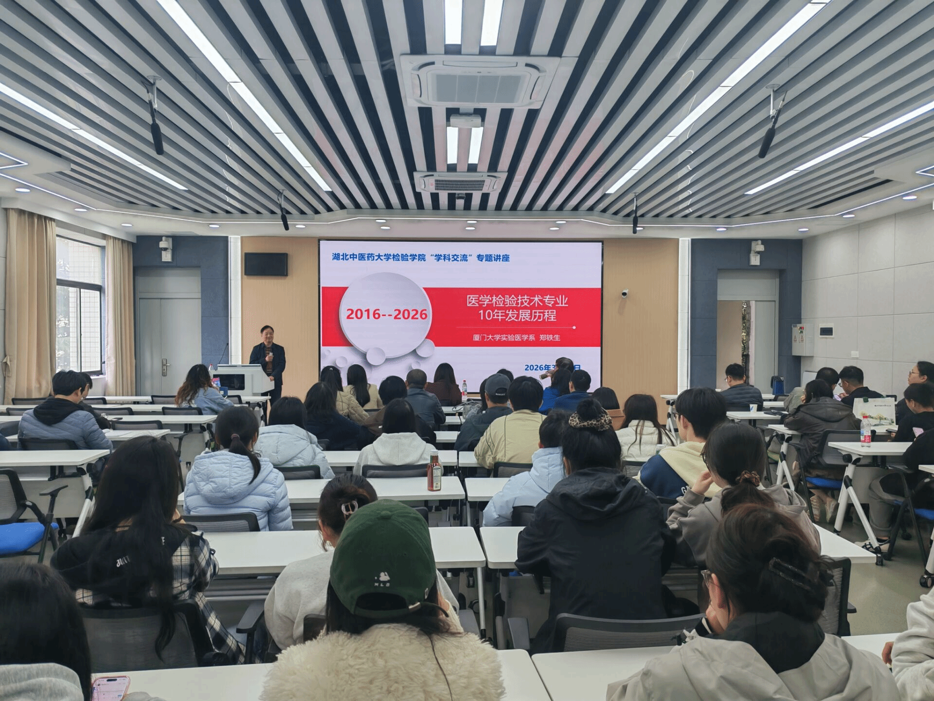 学院行政负责人表示,本次讲座内容系统深入、理念前沿,既是一次对标先进的生动学习,也为学院专业建设提供了精准指引。他强调,全院上下要以此次学习为契机,进一步聚焦专业特色、夯实教学基础,持续推动教育教学改革走深走实。下一步,学院将借鉴两所高校医学检验技术专业的办学经验,扎实推进本科人才培养方案修订,不断激发内生动力,助力学院实现高质量发展。