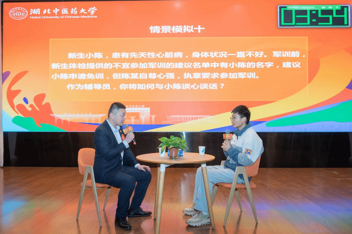 本次大赛坚持以赛促学、以赛促建的原则,对标全国赛制设置,共设置初赛和决赛两个赛程,旨在进一步加强辅导员队伍职业化、专业化建设,推动学校思想政治教育工作高质量发展和学生工作创新发展。初赛于11月举行,通过基础知识测试等,考察辅导员对理论知识的掌握程度和对学生问题的分析能力,12位辅导员晋级决赛。决赛分为学情测试、案例研讨和谈心谈话三个环节。学情测试环节考察辅导员对所带班级学生基本信息的熟知程度,通过“照片识人”的形式,对学生基本情况进行描述定位。案例研讨环节中,参赛辅导员通过“我问你答”的方式,围绕学生工作常见案例共同辨析原因、研讨对策、总结规律,综合展示运用理论分析、研判、解决问题的能力,让观摩师生直观深刻地认识到辅导员在育人工作中发挥的重要作用。谈心谈话环节中,辅导员们聚焦育人工作实务,用扎实的理论功底、专业的沟通技巧、真挚的情感互动,对学生动之以情、晓之以理,温心关怀、耐心教导,彰显了立德树人的责任与担当。现场,全体辅导员重温高校辅导员誓词,庄严承诺全心全意服务学生,恪守辅导员岗位职责,将“为党育人、为国育才”使命践行在点滴行动中。
