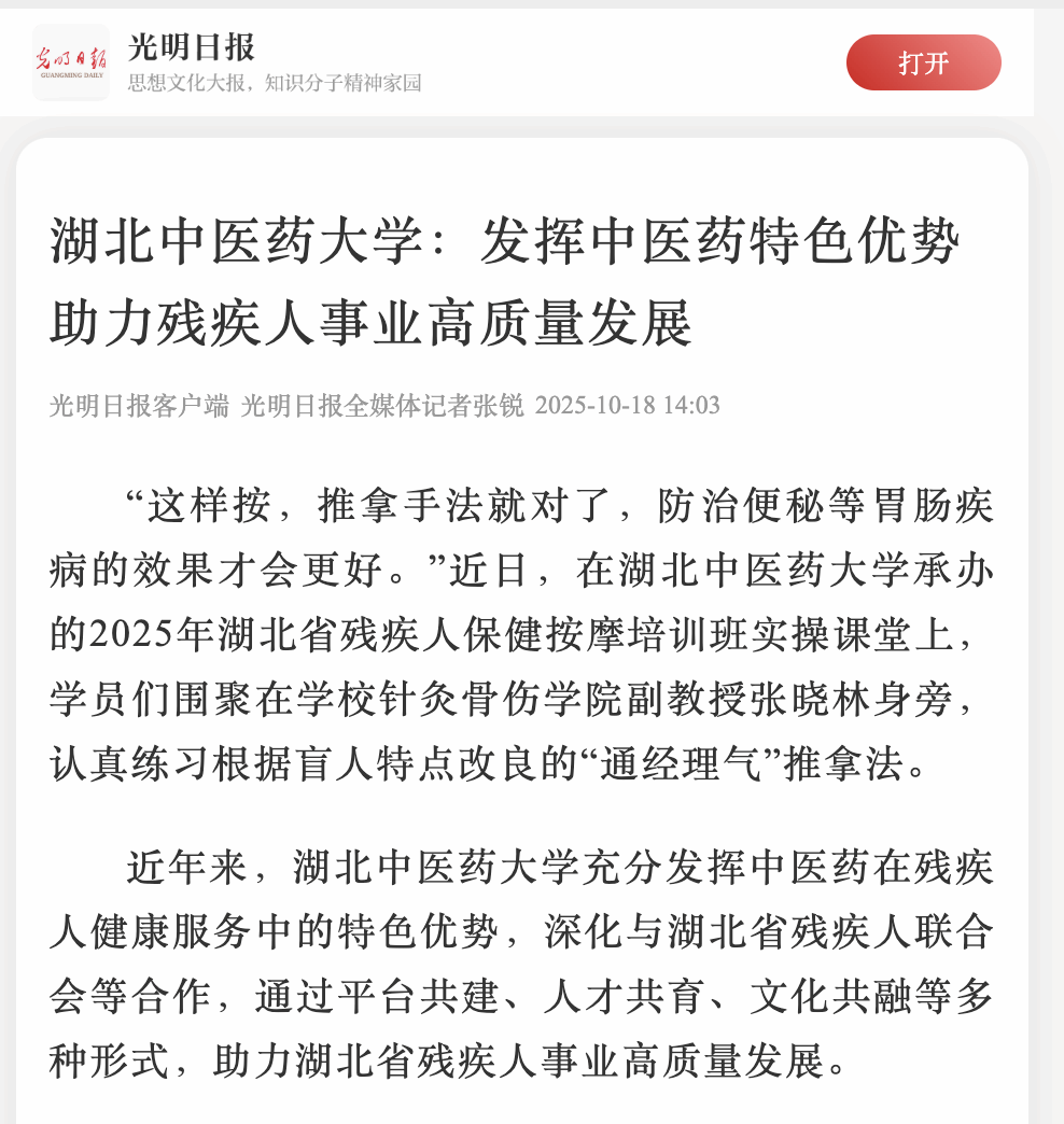 光明日报:湖北中医药大学发挥中医药特色优势助力残疾人事业高质量发展