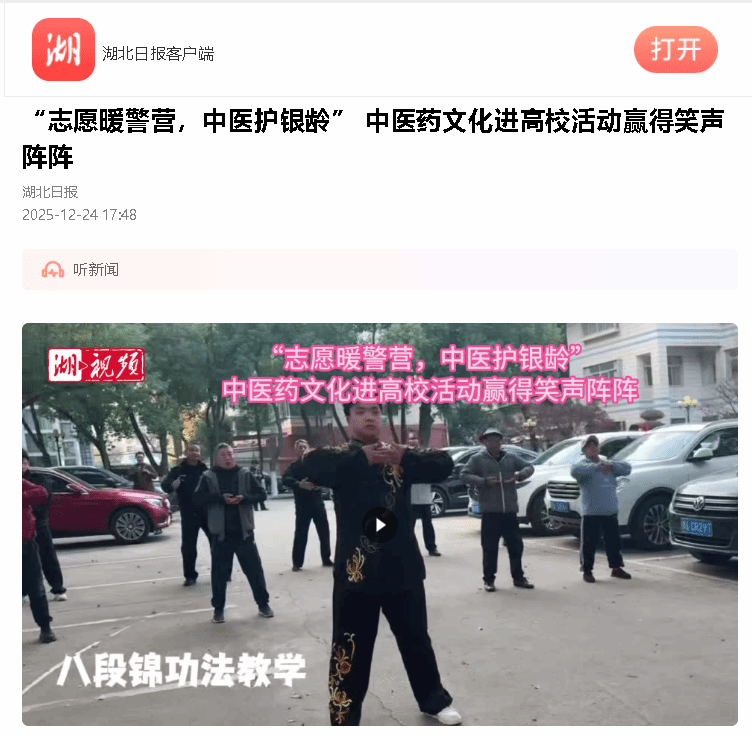 湖北日报:“志愿暖警营,中医护银龄” 中医药文化进高校活动赢得笑声阵阵