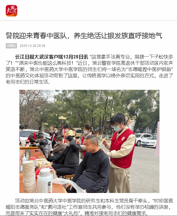 长江日报:警院迎来青春中医队,养生绝活让银发族直呼接地气