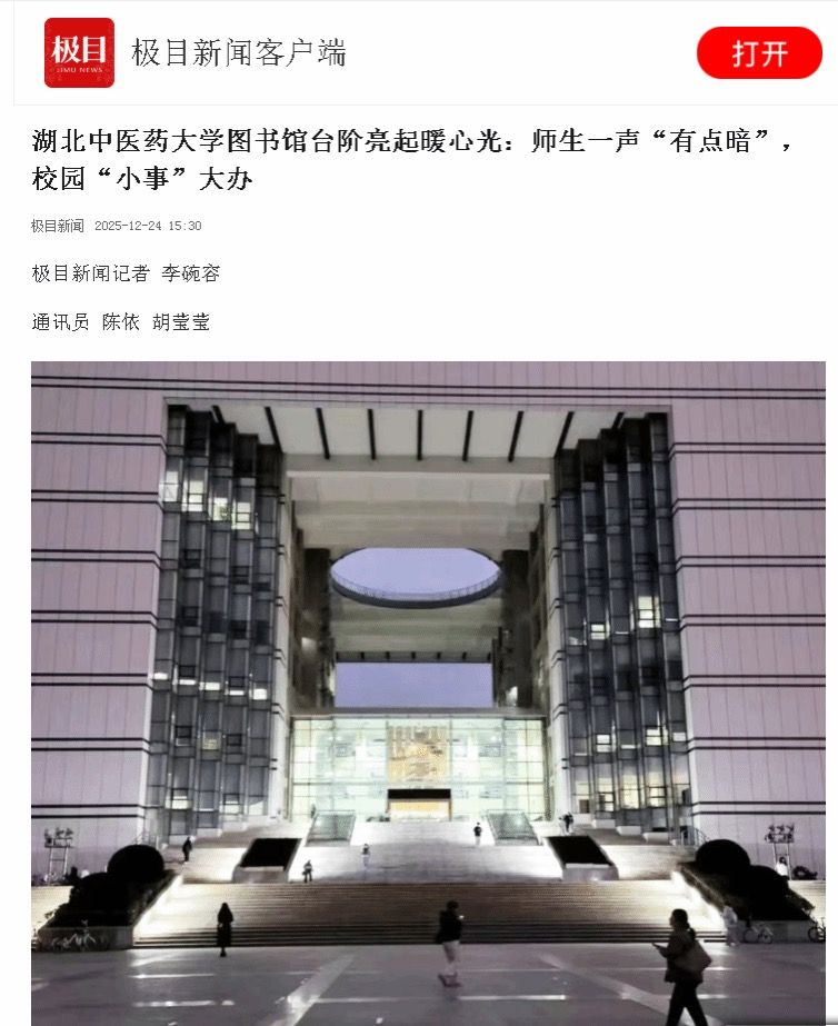 极目新闻:湖北中医药大学图书馆台阶亮起暖心光:师生一声“有点暗”,校园“小事”大办