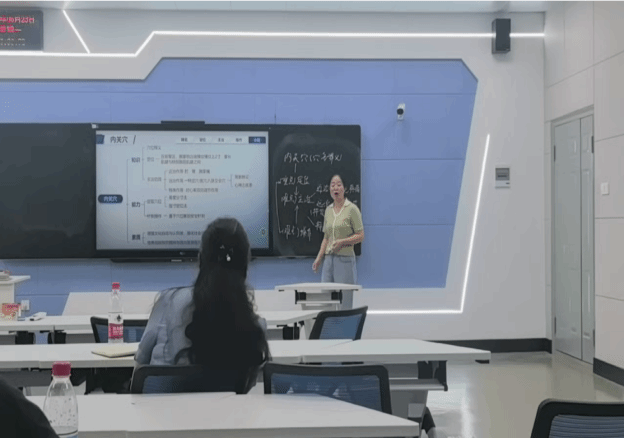 自2025年3月起,学院针灸学教研室为王雅媛组织了多轮次磨课活动,邀请学院教学督导组专家、骨干教师组成评审团,从教学逻辑、时间把控、师生互动、课件制作等方面进行“全方位诊断”。同时严格模拟省青教赛流程,设置“20分钟限时授课”环节,让王雅媛在高强度、高仿真的环境中,有效锤炼临场应变与教学把控能力。通过反复打磨教学案例、持续优化课件细节、创新设计互动环节、专项训练应答技巧,王雅媛的教学水平实现了质的提升。